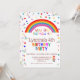 Feiern Sie mit dieser bunten, regenbogenförmigen Einladung Ihren kleinen Tag! Es ist perfekt für Party geeignet und bietet helle, fröhliche Farben und lustige Designelemente, die Gäste aller Altersgruppen begeistern. Personalisieren Sie einfach den Namen, das Alter, das Datum und das Party Ihres Kindes.