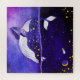Magischer Wal im dunklen Meer. Nachts Sternenhimmel mit einem Monat Tauchen in die Schönheit eines magischen Wals im dunklen Ozean mit einem nächtlich Sternenhimmel. Groove zum Rhythmus einer bunten Abstraktion mit einem Vintagen Radio. Wale, Himmel, Traum, Hintergrund, abstrakt, Aquarell, Wasser, Sommer, Natur, Illustration, Winter, Licht, Poster, Tier, Meer, Stern, Fisch, Blau, Feiern, Ozean