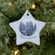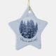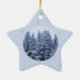 Dieses Weihnachtsschmuck beherbergt einen schneebedeckten Winterwald in dieser Keramik. Schneebäume in blauen Tönen auf einem zarten Hintergrund. Original Foto. Großartiges, romantisches, elegantes Design für Ihren Weihnachtsbaum, schönes Geschenk für jeden! Personalisierbar.