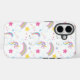Niedliche Einhorntelefon-Gehäuse. Dieses lustige Design zeichnet sich durch eine süße Einhorn-Illustration, Sterne und einen Regenbogen aus. Trendrosa, lila, blau und gelb. Ändern Sie die Hintergrundfarbe in eine beliebige Farbe Ihrer Wahl!