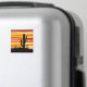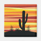 Abstrakte geometrische Sonnenuntergangsbild der Wüste mit gelben, orangen und roten diagonalen Streifen und Kaktusdekoration. Fügen Sie Ihren Namen/Monogramm hinzu oder löschen Sie den Text.