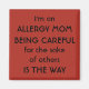 Personalize this magnet one] to suit your needs! "I'm an Allergy Mom / Nurse . . . Being Careful for the sake of others Is The Way". Customize name/title/background color. Get one for everyone in your child's life! Great teacher / nurse gift too!