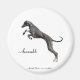 Magnet représentant un Azawakh bondissant en noir et blanc