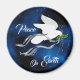 Personnalisez ce Magnet de la colombe blanche Inspiration "Un d'un genre" ! Il comprend une colombe blanche sereine portant une branche d'olivier parmi les étoiles de Noël, avec des rubans gris et d'argent qui se répandent... "Paix sur Terre"! C'est un Art Design original de l'artiste Kerry Miller.