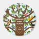 Fête de la Réunion familiale, faveurs et cadeaux commémoratifs avec un arbre rempli d'oiseaux drôles. Modifier le texte pour ajouter le nom de famille et l'année.