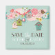 Belles illustrations de deux tourterelles perchées sur une branche capricieuse avec des fleurs variées. Ceci économise l'aimant de date est parfait pour un mariage d'été ou de printemps.