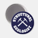 Géologue structurel - aimant bleu foncé avec lettrage collégial blanc et marteaux de roche croisés graphique.
