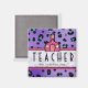 Un aimant pour les enseignants avec un arrière - plan d'empreinte de léopard violet. Texte personnalisable Logo de The Pink Schoolhouse au centre supérieur.