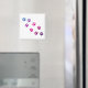Une trace de pattes de chat colorées faites dans un dégradé rose, bleu et violet sur un aimant
