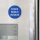 Blauer Magnet mit den Worten Dream Glauve Achieve! in weißer Schrift.