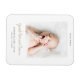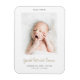 Ce faire-part de naissance photo tout simplement charmant dispose d'un design contemporain qui vous permet de facilement customiser à votre style. En haut, nous avons ajouté "BONJOUR, MONDE" mais s'il vous plaît n'hésitez pas à changer cela à tout ce qui vous chante, que ce soit "BIENVENUE" ou "INTRODUCTION", etc. Si vous souhaitez souligner votre gratitude pour un cadeau et faire de celui-ci un aimant de remerciement, vous pouvez le modifier pour montrer "MERCI TELLEMENT !" ou similaire en haut. Ce texte est en noir, et vous pouvez le modifier si vous le souhaitez. En choisissant un script pour le nom de votre bébé, nous recherchions quelque chose d'informel, avec la personnalité mais aussi un flux ordonné qui est facile à lire, et nous avons trouvé quelque chose que nous aimions. Nous avons ajouté un élégant ton doré parfois appelé or de Californie pour accentuer cette partie du design. Ceci dit, vous pouvez changer la couleur et la police de ce texte ou de tout autre texte selon votre goût, et nous vous invitation à jouer avec ces éléments. Si vous préférez un look plus minimaliste, vous pouvez supprimer sans remplacer l'un de nos exemples de statistiques - vous pouvez ne pas inclure l'heure de la journée ou la longueur, par exemple. La couleur par défaut du texte sous le nom est gris foncé. Utilisez les outils de design intuitifs et votre photo préférée et votre inspiration pour personnaliser cet aimant de faire-part de naissance personnalisé et le rendre unique à vous!