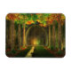 Un grand hall coupé à flanc de colline, et le long de chaque mur une allée d'arbres. Au fond, une baie peu profonde au toit voûté et un petit ruisseau qui s'enfonce comme un beau rideau devant. Dans la baie une table et deux vaisseaux, qui brillent avec un or et un feu vert. Le mélange des deux lumières est comme le soleil d'été qui brille à travers de jeunes arbres. Les arbres aussi brillent, chaque feuille bordée de lumière, vert et or et rouge.