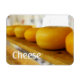 Photographie de plusieurs roues jaunes de fromage reposant sur une étagère en bois. Texte personnalisable, "Fromage" imprimé dans le coin inférieur gauche.