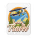 Logo de style rétro Love to Travel avec un grand avion.