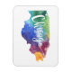 Ce design présente une carte de l'état américain de l'Illinois avec la ville de Chicago avec une aquarelle peinte à la main multicolore. Le texte stylisé "Chicago" est ajouté au-dessus avec une étoile pour indiquer l'emplacement de la ville.