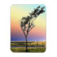 Un design artistique d'un arbre solitaire avec un ciel dramatique et des champs au loin.