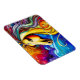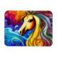 Beau cheval Palomino avec crinière colorée sur un arrière - plan arc-en-ciel tourbillonnant. Un aimant art numérique fait avec un logiciel de rendu d'IA.