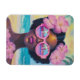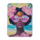portrait magnifique et vibrant d'une femme élégante portant des lunettes de soleil roses surdimensionnées reflétant une plage tropicale onirique. Entourée de fleurs d'hibiscus et entourée d'un océan turquoise, cette oeuvre d'art saisit l'essence de l'été, de la beauté et de l'autonomisation. Parfait pour les amateurs de plage, les collectionneurs d'art à la mode et la décoration à thème tropical.