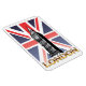 Un design vintage avec un dessin en noir et blanc de Big Ben placé sur l'Union Jack.