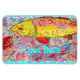 montre des truites arc-en-ciel colorées pourchassant une mouche avec un look sérigraphique! aussi avec le slogan "Truite cloche"