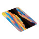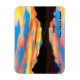 Un canot traversant un lac de montagne reflétant les belles oranges et les bleus d'un coucher de soleil coloré. Ajoutez votre propre texte.