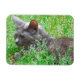 Cet article affiche la photo d'un chat tortie gris reposant dans l'herbe.