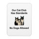 Aimant 3 pouces x 4 pouces avec "Notre club de chat a des normes - pas de chiens autorisés" image joueuse et humoristique. C’est un design léger, parfait pour les amoureux de les chats qui aiment un peu l’humour sarcastique "les chats, les chiens beuvent".