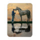 Cheval Gris Et Groom OTTB, Aimant Flexible. Art numérique. "La participation". Un cheval gris se tient avec son marié dans un champ de soirée au coucher du soleil. Le design s'adresse aux amateurs de chevaux, de fermes hippiques, de courses, de sports équins et aussi de soins de pur-sang. Personnalisez-le à votre gout . Entièrement personnalisable ; modifiez le libellé selon vos besoins, ou supprimez-le entièrement.