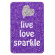 Purple Live Love Sparkle Citation Magnets avec Faux violet parties scintillant arrière - plan et argent accent coeur de mosaïque.