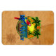 Key West Florida, la ville la plus au sud des Etats-Unis. Bach coucher de soleil avec palmiers, cadre rond en bambou, perroquet de macaw coloré, et une carte nautique vintage des îles avec un rose boussole.