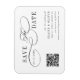 Cette annonce de save the date magnétique à l'écriture calligraphique romantique est parfaite pour un mariage simple. Le design minimaliste noir et blanc présente une lettre calligraphique élégante et romantique avec un code QR.