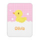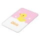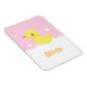 Un design avec un canard en caoutchouc jaune mignon dans la douche et le savon. Beaucoup de bulles de douche et un carrelage rose sucré salle de bain arrière - plan. Doux et adorable pour les petites filles ! Personnalisez facilement avec le nom de l'enfant.