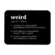 Un aimant flexible avec la définition du dictionnaire du mot 'bizarre'. Weird est un mot adjectif qui signifie : 1. impliquant ou suggérant le surnaturel; non terrestre ou étrange. 2. étonnamment ou extraordinairement singulier, étrange ou queer. 3. s'intéresse ou contrôle du destin ou du destin. Design de typographie par moi 🖤