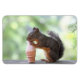 Photo d'un écureuil mangeant un cône de glace à l'extérieur sur la balustrade en bois d'un pont arrière. L'écureuil lèche un faux cône avec ce qui ressemble à de la crème glacée aux fraises...ou peut-être que c'est de la glace aromatisée à l'arachide ! Un bel arrière - plan vert doux aux arbres à feuillage persistant contraste avec le cône de crème glacée rose. Un drôle de tableau d'écureuils que tous ceux qui aiment les écureuils ou la crème glacée aimeraient!