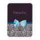 Un aimant flexible empreinte de léopard tendance bleu et prune avec un joli ruban bleu enveloppé comme un cadeau. Personnalisez en ajoutant votre nom. Un cadeau parfait pour une fille ado !