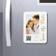 Save The Date White Gold Script élégant Le Magnet Mariage moderne dispose d'un arrière - plan blanc avec votre photo personnalisée. Personnalisez avec votre texte en modifiant le texte dans les zones de texte fournies et ajoutez l'URL de votre site Web pour votre code QR personnalisé. Conçu pour vous par ©Evco Studio www.zazzle.com/store/evcostudio