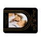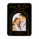 Save The Date Black Gold Stylish Script Art Déco Mariage Magnets présente votre photo préférée dans une arche dorée sur un arrière - plan noir. Personnalisez avec votre texte en modifiant le texte dans les zones de texte fournies. Conçu pour vous par ©Evco Studio www.zazzle.com/store/evcostudio