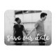 Photo moderne enregistrer l'aimant de date avec votre image horizontale plein fond avec une superposition de texte. Les mots "sauver notre date" sont dans une épaisse police de caractères manuscrite blanche. Un design simple mais élégant qui fait de votre photo la principale caractéristique.
