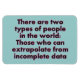 On peut y lire : "Il y a deux types de personnes dans le monde : celles qui peuvent extrapoler à partir de données incomplètes"