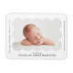 Magnet de faire-part de naissance moderne comportant la photo de votre bébé nichée à l'intérieur d'un cadre arrondi blanc. Personnalisez le magnet de faire-part de naissance blanc en ajoutant le nom de votre bébé et des informations supplémentaires en lettrage noir.