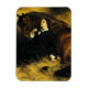 Magnet représentant la peinture à l’huile de Sir Edwin Henry Landseer The Shrew Tamed ou The Joli Horsebreaker (1861). Une élégante femme dans des salons de vêtements noirs à côté d'un beau cheval brun. Un petit chien regarde dans l'arrière - plan. Ils sont tous assis dans une grange de foin. Un cadeau parfait pour les amateurs de chevaux et d'art victorien.