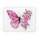 Flower arrangement of pink butterfly with rose Japanese cherry blossoms on white background.