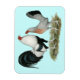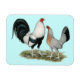 Les ailes de canard en argent sont de belles gamefowl, les coqs en noir et blanc contrastant et les poules en gris subtil et saumon.