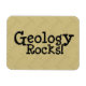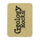 "Geology Rocks !" sur un aimant avec un arrière - plan marteau marron. C'est le dicton géologique standard.