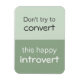 Il n'y a rien de mal à être introverti. Donnez aux gens qui veulent vous rendre plus extravertis un message poli avec ce slogan qui dit : "N'essayez pas de convertir ce joyeux introverti"