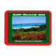 Happy Holidays! avec une pelouse verte luxuriante avec des fleurs oranges vibrantes avec Horseshoe Bay Beach, Bermudes, comme la goutte principale. Paroisse de Southampton Bermuda aimant. Par https://www.zazzle.com/store/celestesheffey