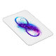 Infinity symbole with a beautiful feather painted in purple and blue bright colors on white background