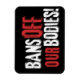 Montrez votre soutien au droit des femmes à l'autonomie corporelle avec cet aimant pro-choix "Bans Off Our Bodies" avec une police blanche et rouge style grunge sur arrière - plan noir.