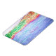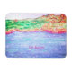 Un tableau original d'une île et des eaux en Italie appelé Budelli - il a une mer turquoise, une végétation luxuriante et des rochers violets et oranges. Aussi avec le slogan "Isla Budelli" !