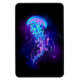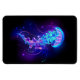 Grande méduse bleue, artistiquement dessinée, brillante, brillante, avec de longues tentacules sur arrière - plan noir avec bioluminescence violette. Méduse brillante.